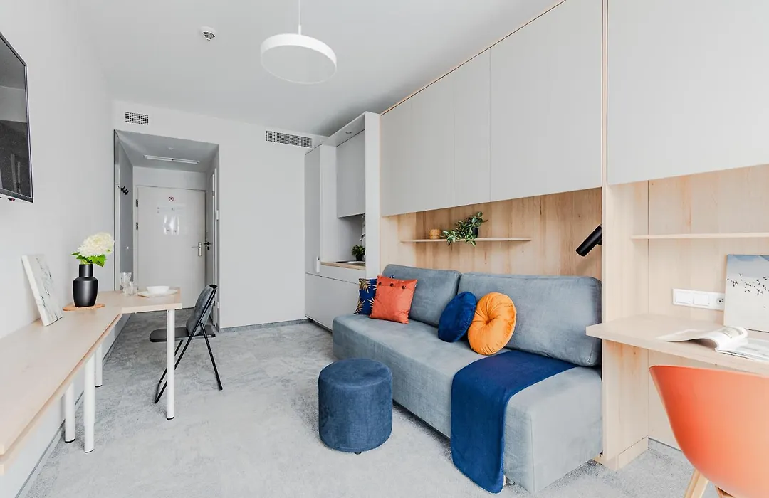 Apartament jest wyposażony w aneks kuchenny z płytą grzejną i przyborami kuchennymi. Od apartamentu SuperApart Wilanów MiniStudio, Medicover, Świątynia Opatrzności do przystanku autobusowego Branickiego 71 w bliskiej odległości.